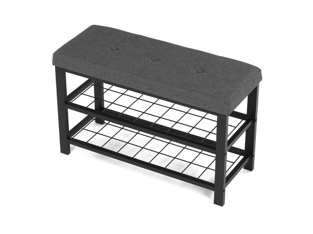 Praktický botník s čalouněným sedákem pro pohodlné obouvání. Dvě kovové police nabízejí dostatek prostoru pro obuv, stabilní kovová konstrukce zajišťuje pevnost a dlouhou životnost. Díky modernímu šedému designu se snadno hodí do každé předsíně.