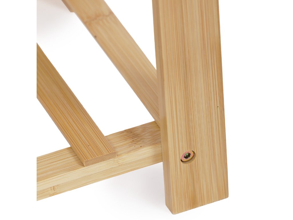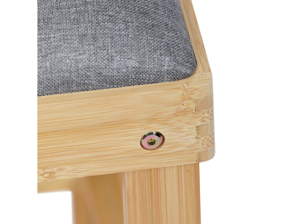 Stylový botník z masivního bambusu v přírodním odstínu doplněný šedým čalouněným sedákem. Nabízí dvě odkládací police pro obuv a praktické sezení při obouvání. Otevřená konstrukce zajišťuje dobré odvětrávání a snadnou údržbu. Díky kompaktním rozměrům se hodí i do menších předsíní.