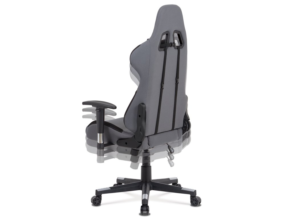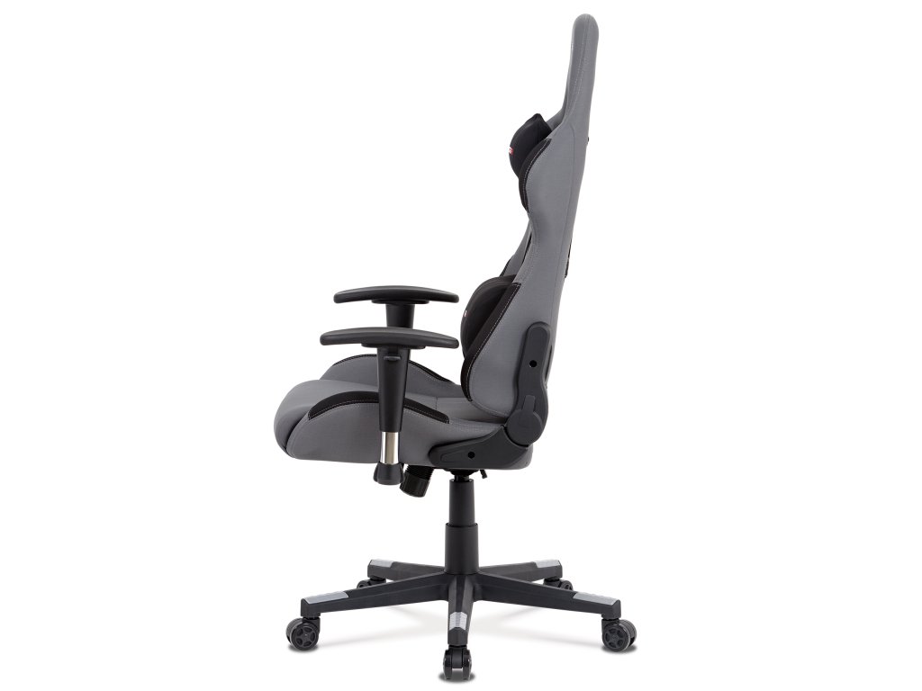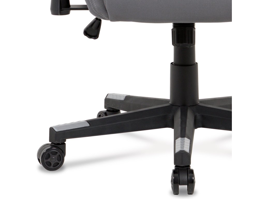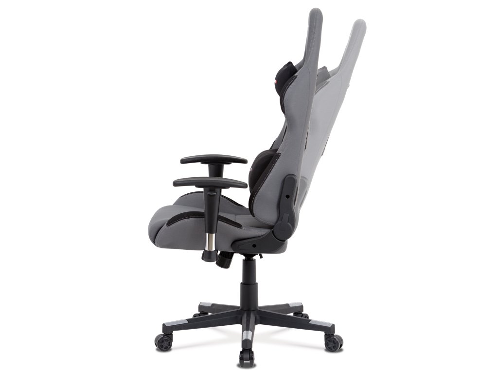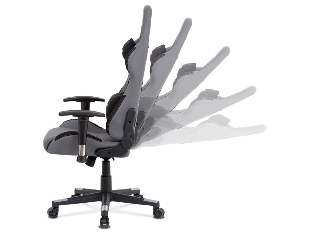 Herní křeslo KA-F05 GREY nabízí pohodlné sezení díky čalounění z odolné šedé látky a houpacímu mechanismu s nastavitelným náklonem až 90°.