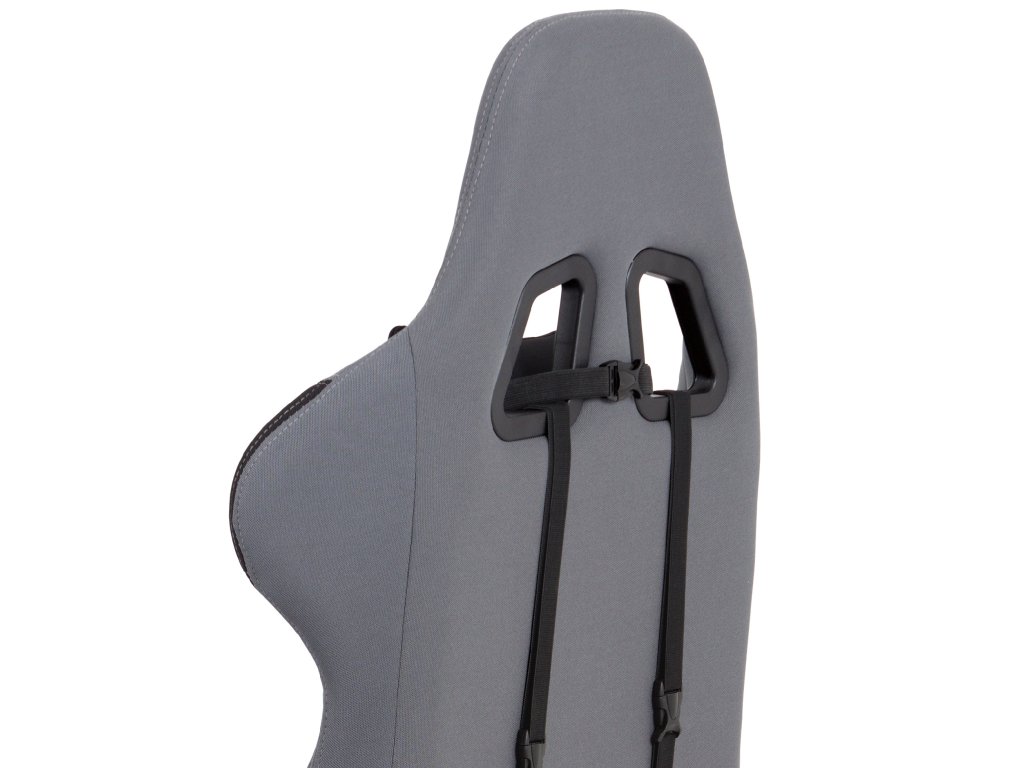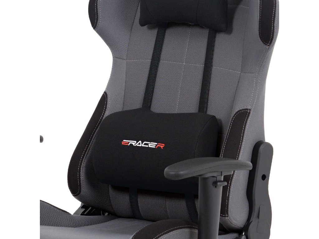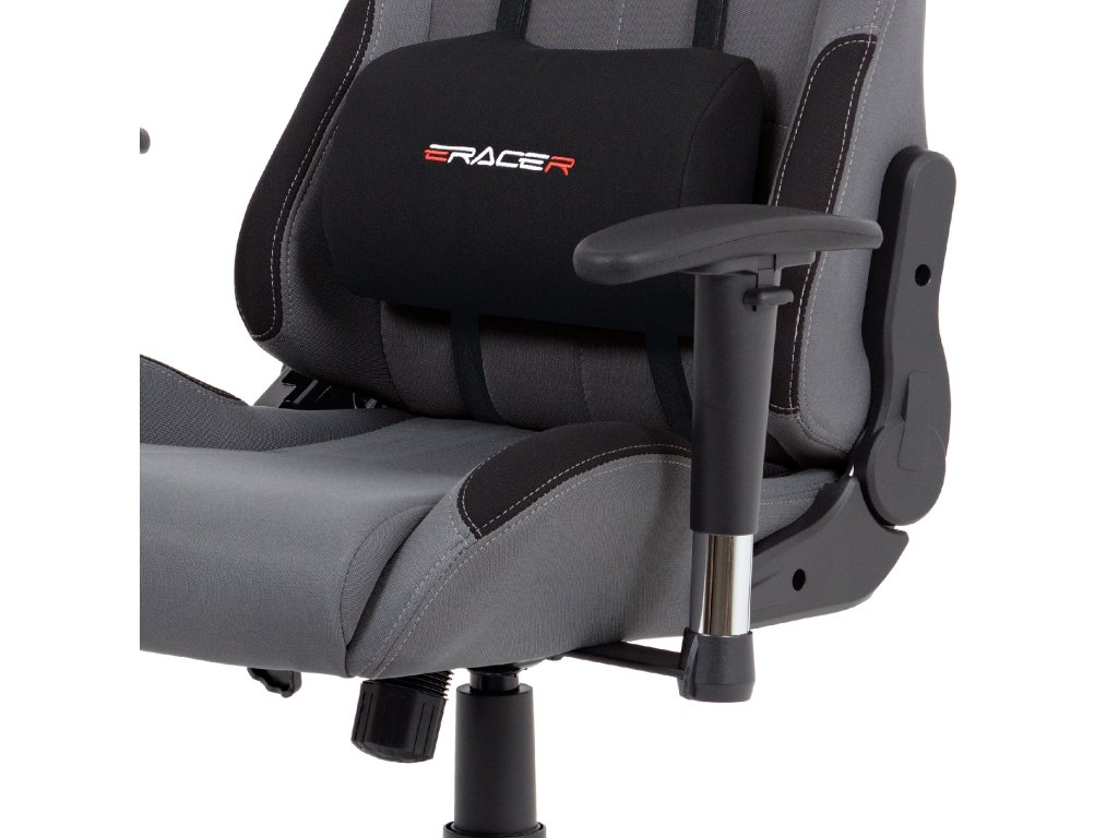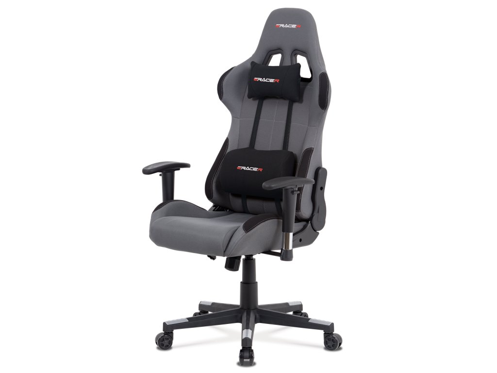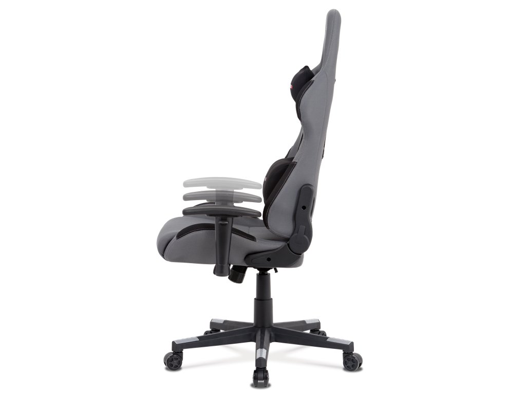 Herní křeslo KA-F05 GREY nabízí pohodlné sezení díky čalounění z odolné šedé látky a houpacímu mechanismu s nastavitelným náklonem až 90°.