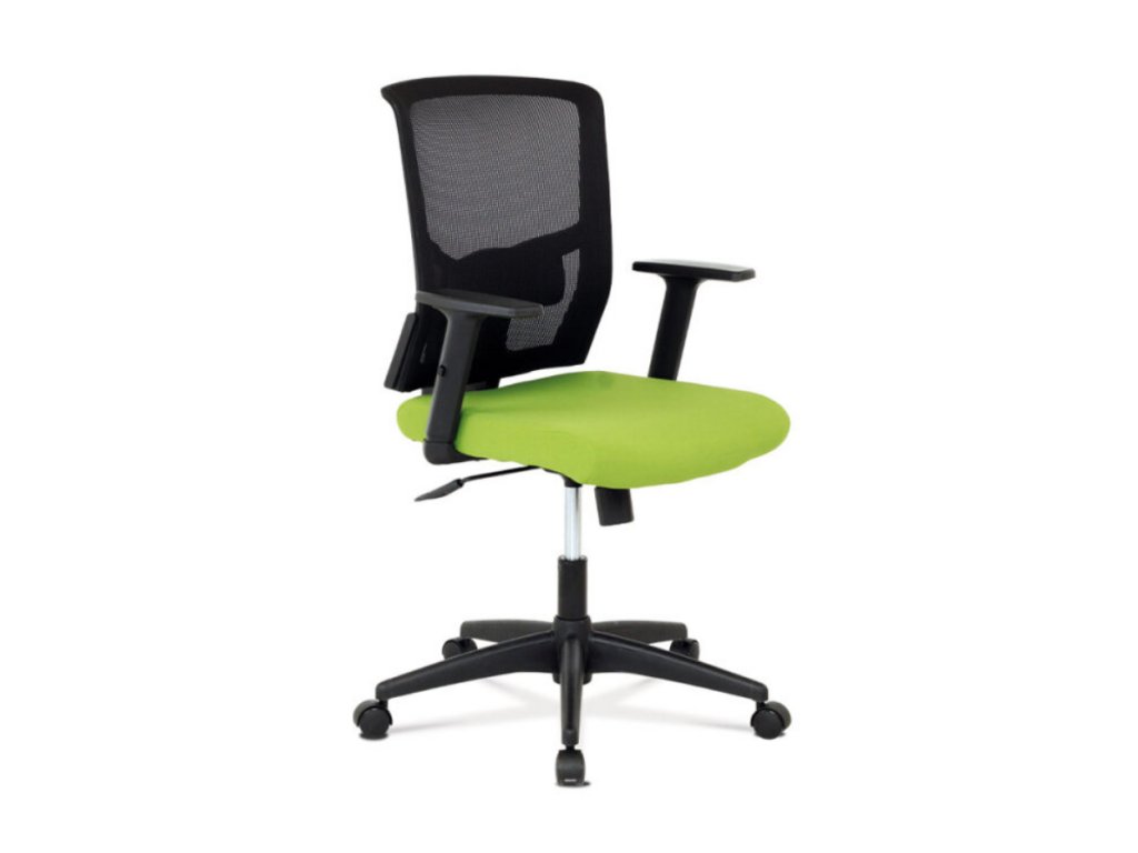Kancelářská židle KA-B1012 GRN v zelené barvě je vybavena výškově nastavitelnými opěrkami, pasivní bederní podporou a plastovým křížem s kolečky vhodnými na koberce. Opěradlo je ze síťoviny, sedák očalouněn látkou. Židle je výškově nastavitelná s houpacím mechanismem a nosností až 120 kg.