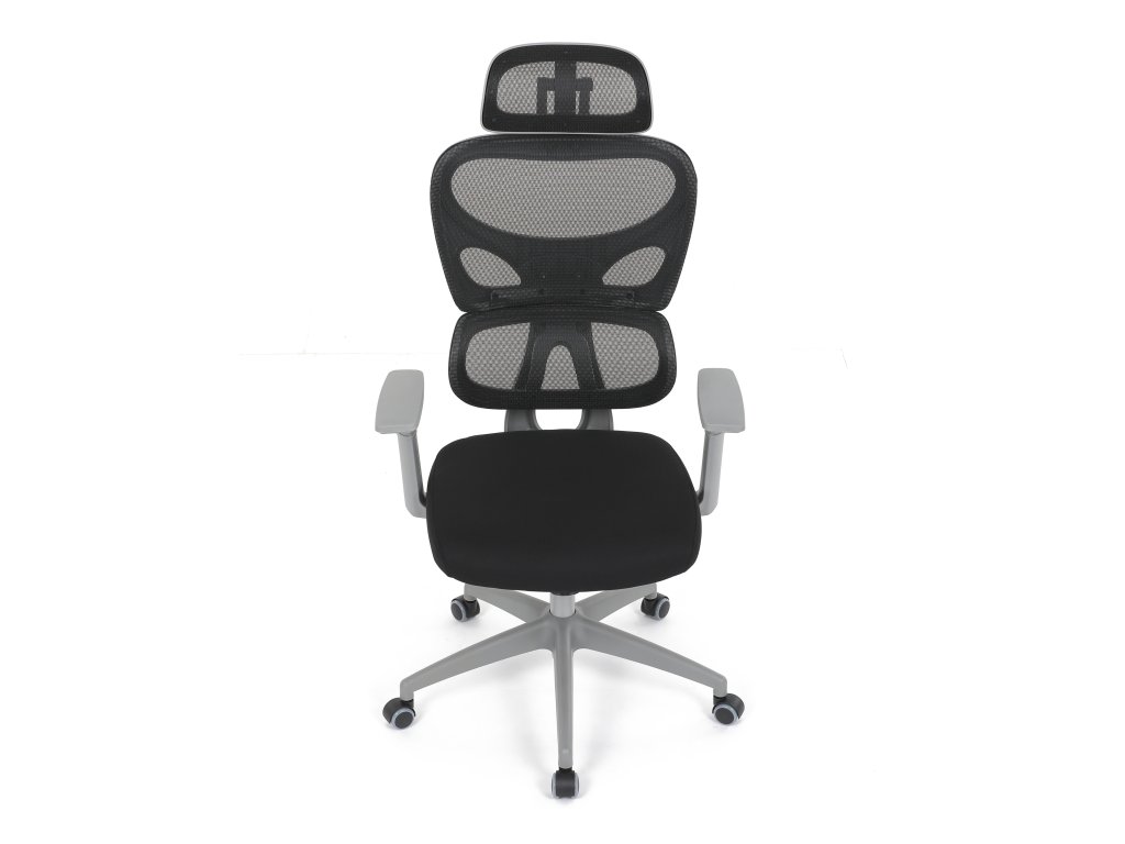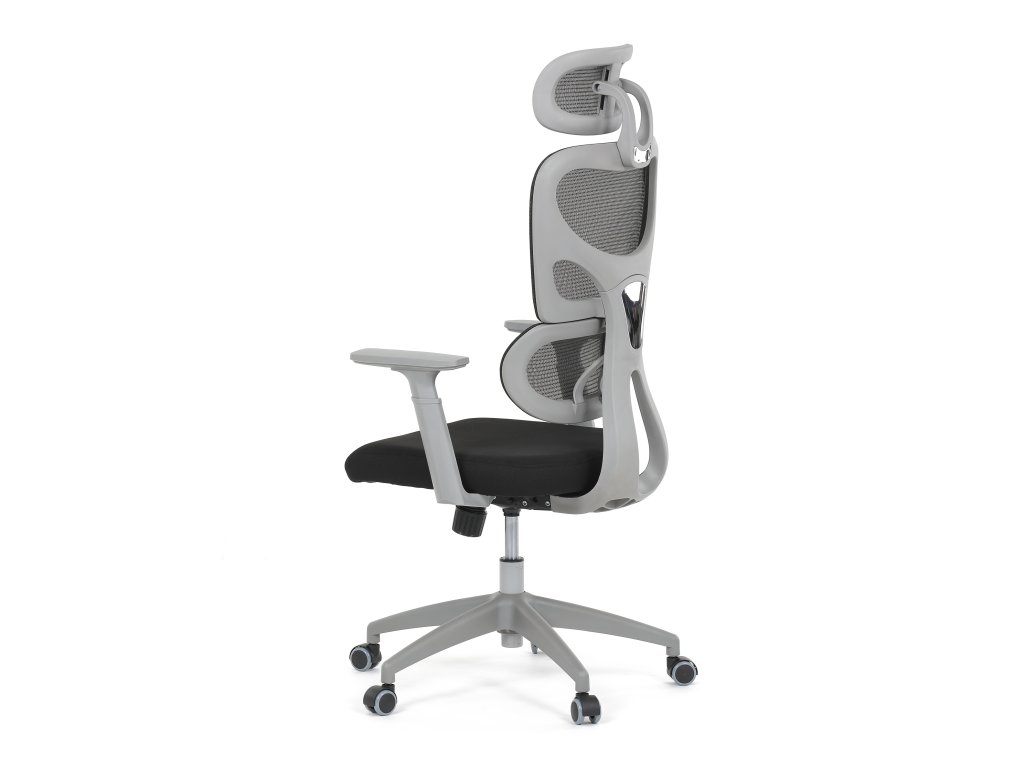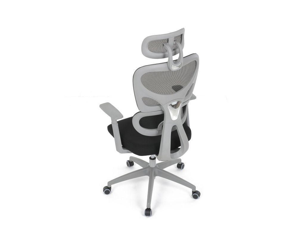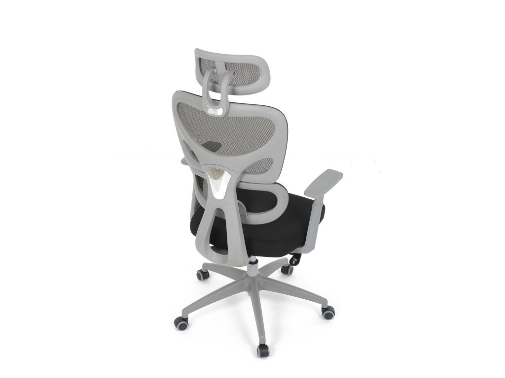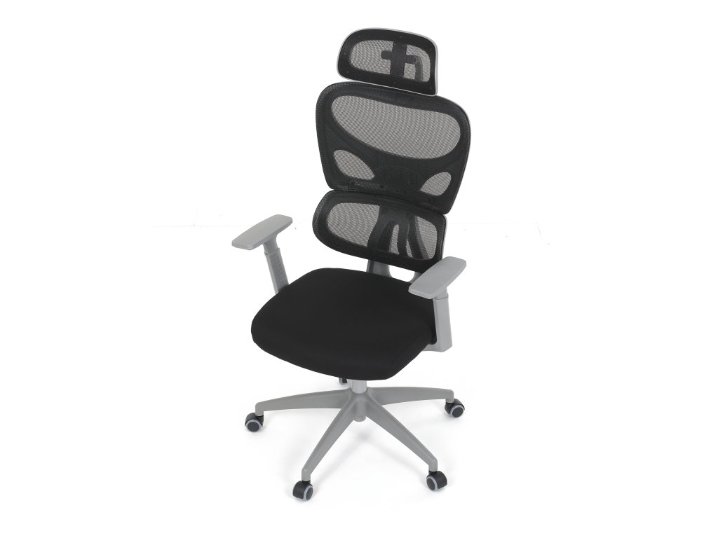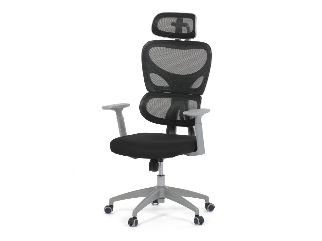 Kancelářská židle KA-K2081 BK v elegantním černém provedení. Síťovaný potah zajišťuje prodyšnost a pohodlí i při delším sezení. Židle je vybavena bederní opěrkou, opěrkou hlavy a houpacím mechanismem, který umožňuje příjemné naklánění. Pevné područky a nastavitelná výška sedu poskytují optimální ergonomii pro každodenní práci.