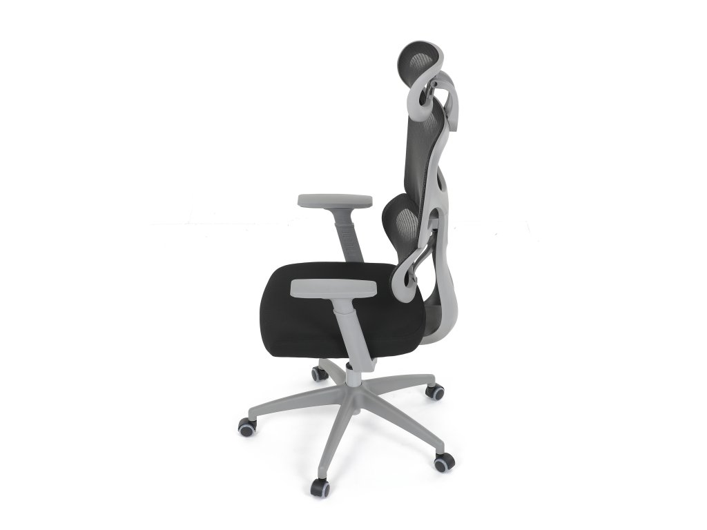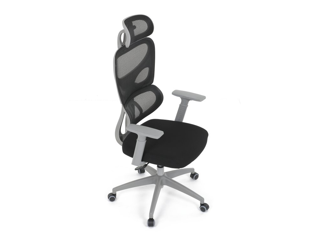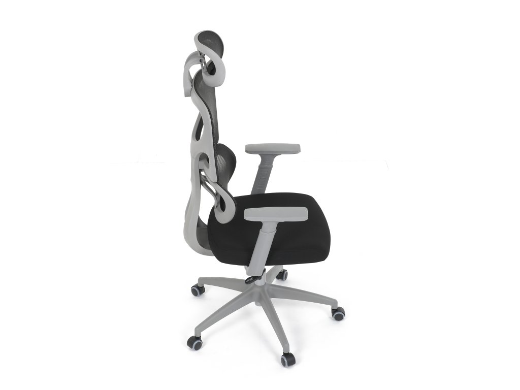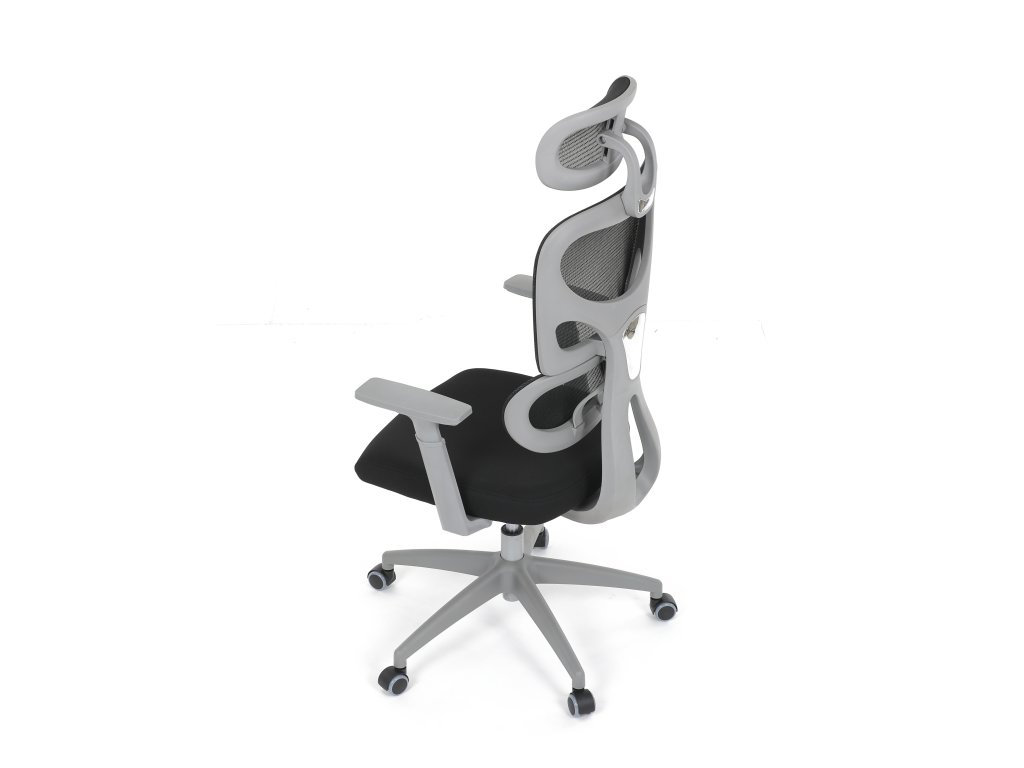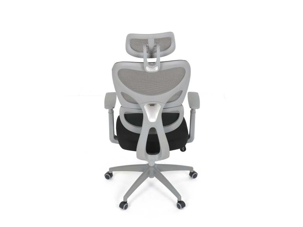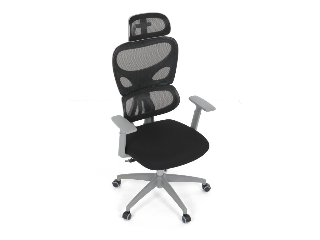 Kancelářská židle KA-K2081 BK v elegantním černém provedení. Síťovaný potah zajišťuje prodyšnost a pohodlí i při delším sezení. Židle je vybavena bederní opěrkou, opěrkou hlavy a houpacím mechanismem, který umožňuje příjemné naklánění. Pevné područky a nastavitelná výška sedu poskytují optimální ergonomii pro každodenní práci.