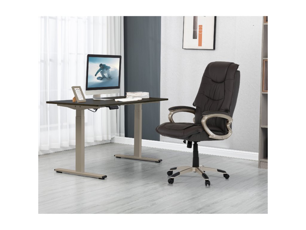 Kancelářské křeslo KA-Y293 BR v elegantním tmavě hnědém koženém provedení nabízí pohodlné a stylové sezení. Ergonomicky tvarovaný sedák i opěradlo jsou silně polstrované pro maximální komfort. Pevné čalouněné područky doplňují plastové prvky v barvě champagne, které ladí s plastovým křížem židle. Houpací mechanismus umožňuje naklápění i nastavení výšky sedu podle potřeby. Kolečka jsou vhodná pro tvrdé podlahy.