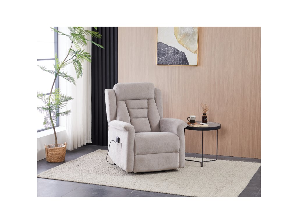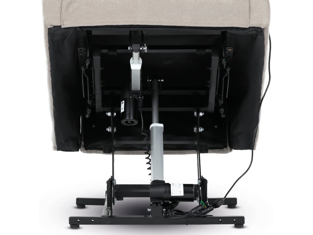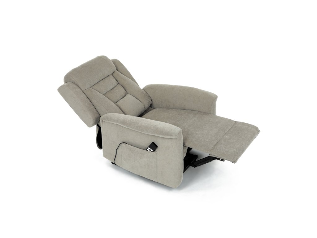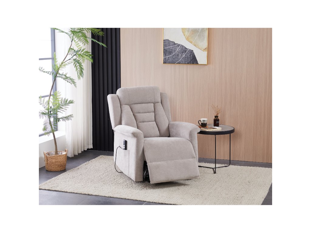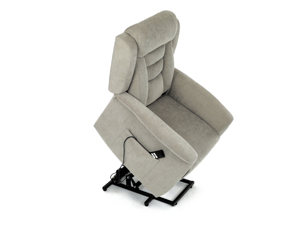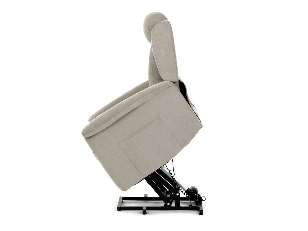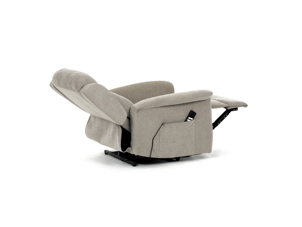 Křeslo je vybaveno funkcí výklopu, která usnadňuje vstávání, a elektrickým kabelovým ovládáním s intuitivním dálkovým ovladačem. Pevná kovová podnož zaručuje stabilitu a bezpečnost při používání. Ergonomický tvar sedáku, široké područky a moderní design z něj dělají ideální doplněk do obývacího pokoje.