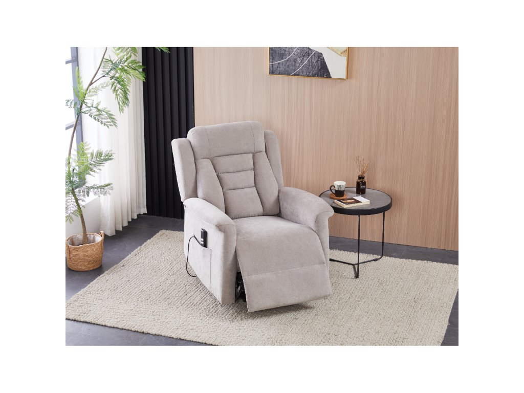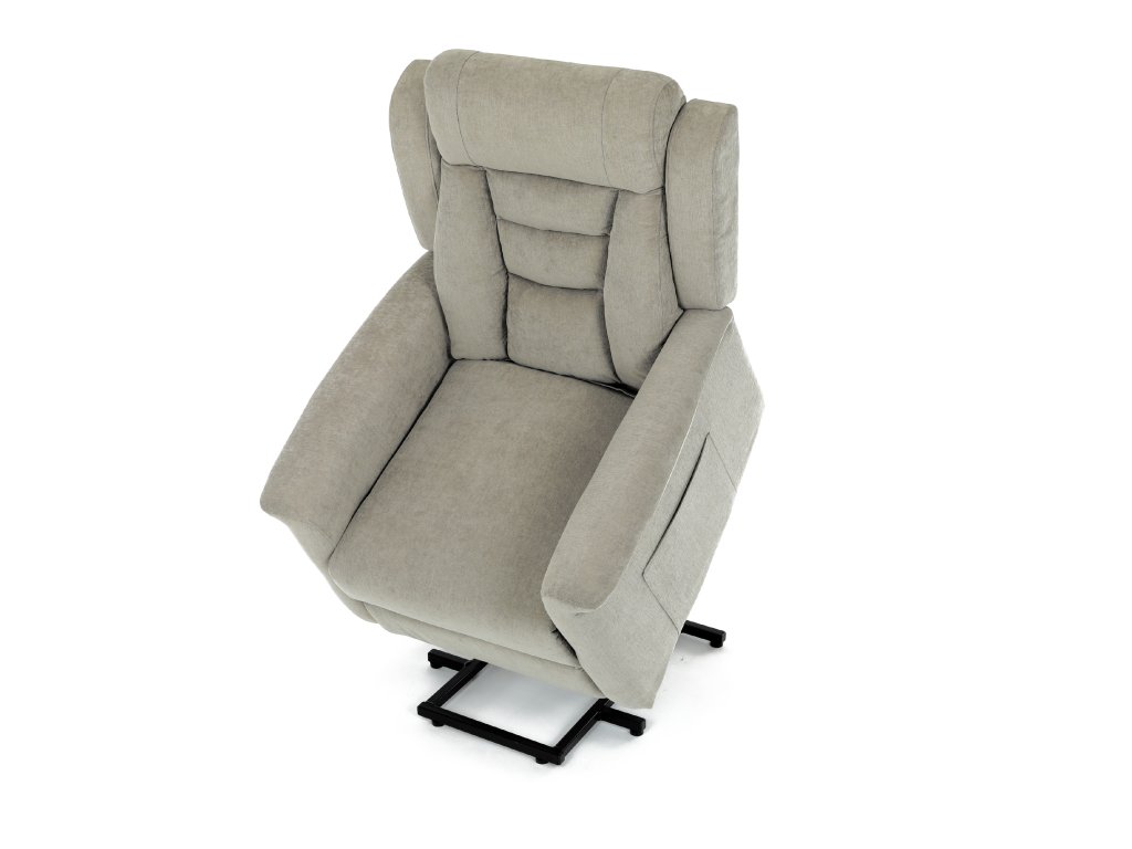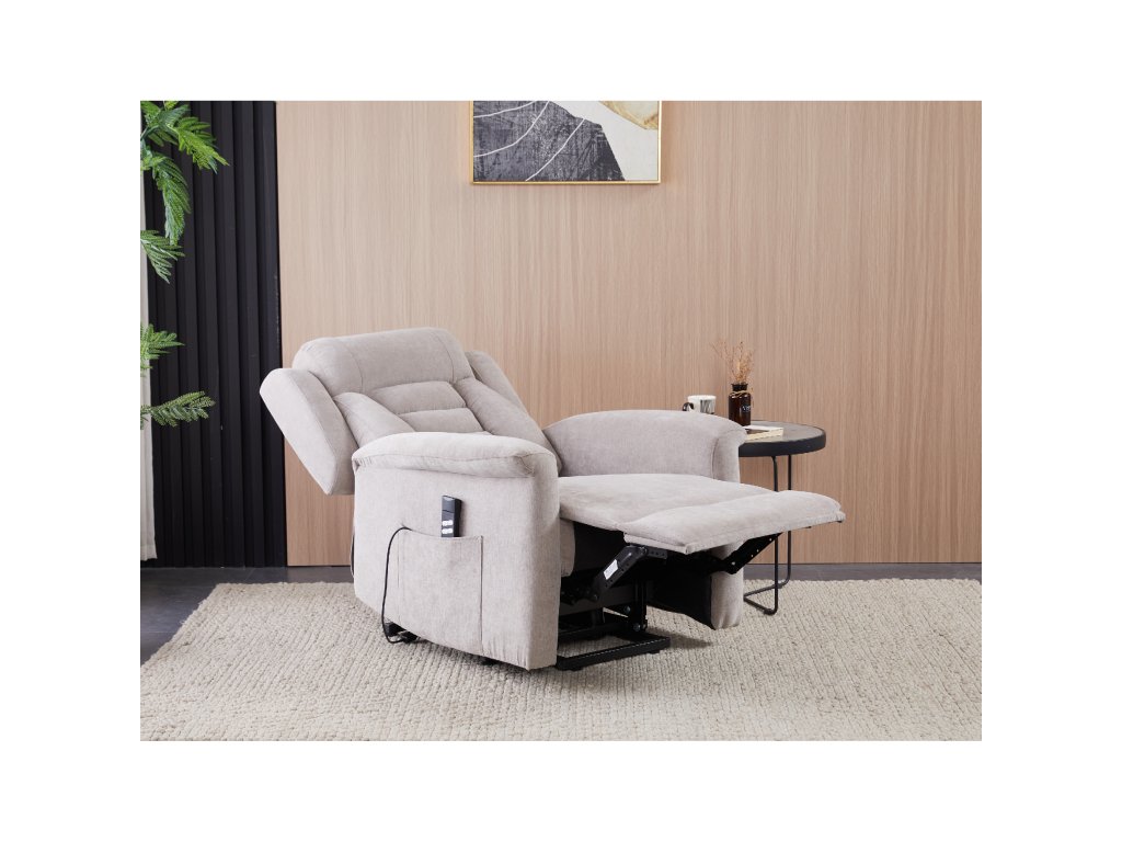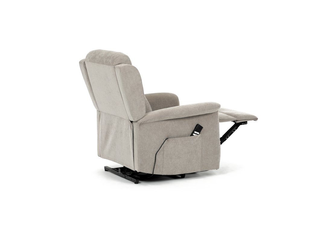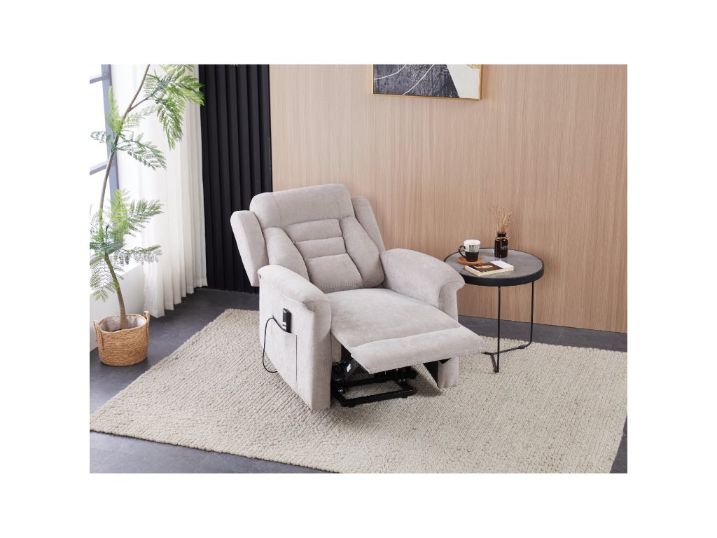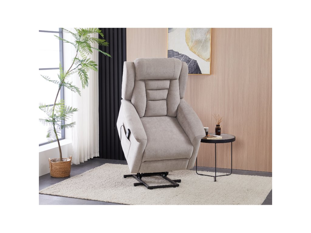 Křeslo je vybaveno funkcí výklopu, která usnadňuje vstávání, a elektrickým kabelovým ovládáním s intuitivním dálkovým ovladačem. Pevná kovová podnož zaručuje stabilitu a bezpečnost při používání. Ergonomický tvar sedáku, široké područky a moderní design z něj dělají ideální doplněk do obývacího pokoje.