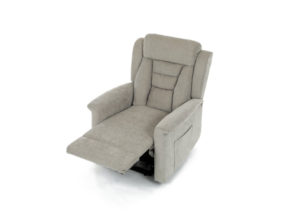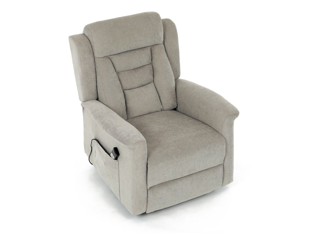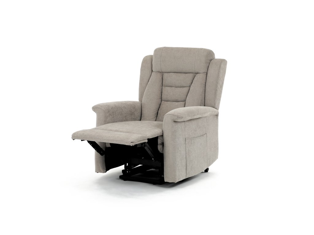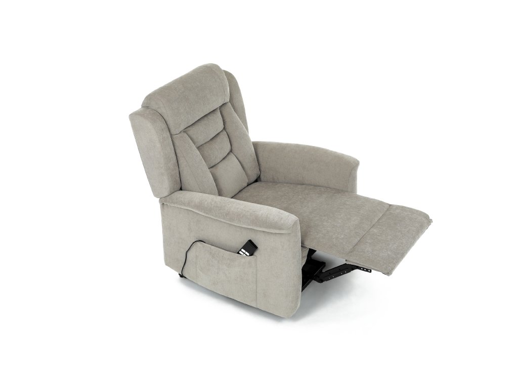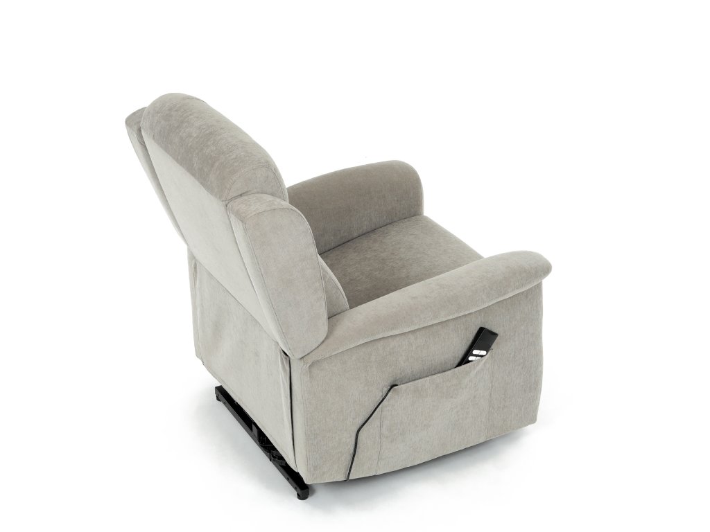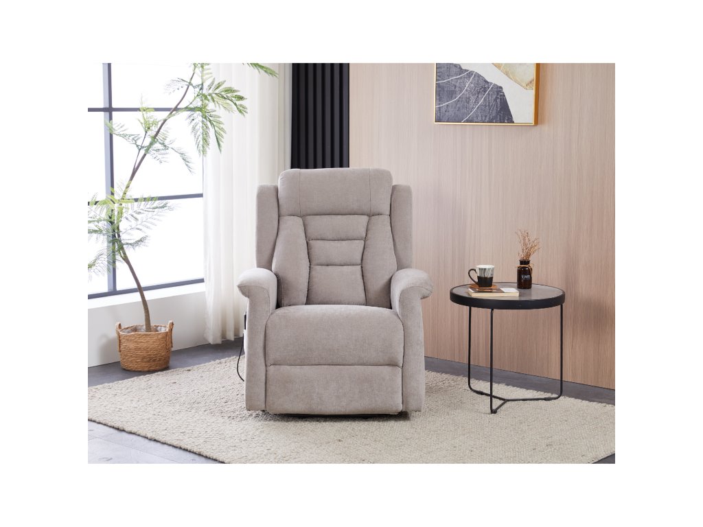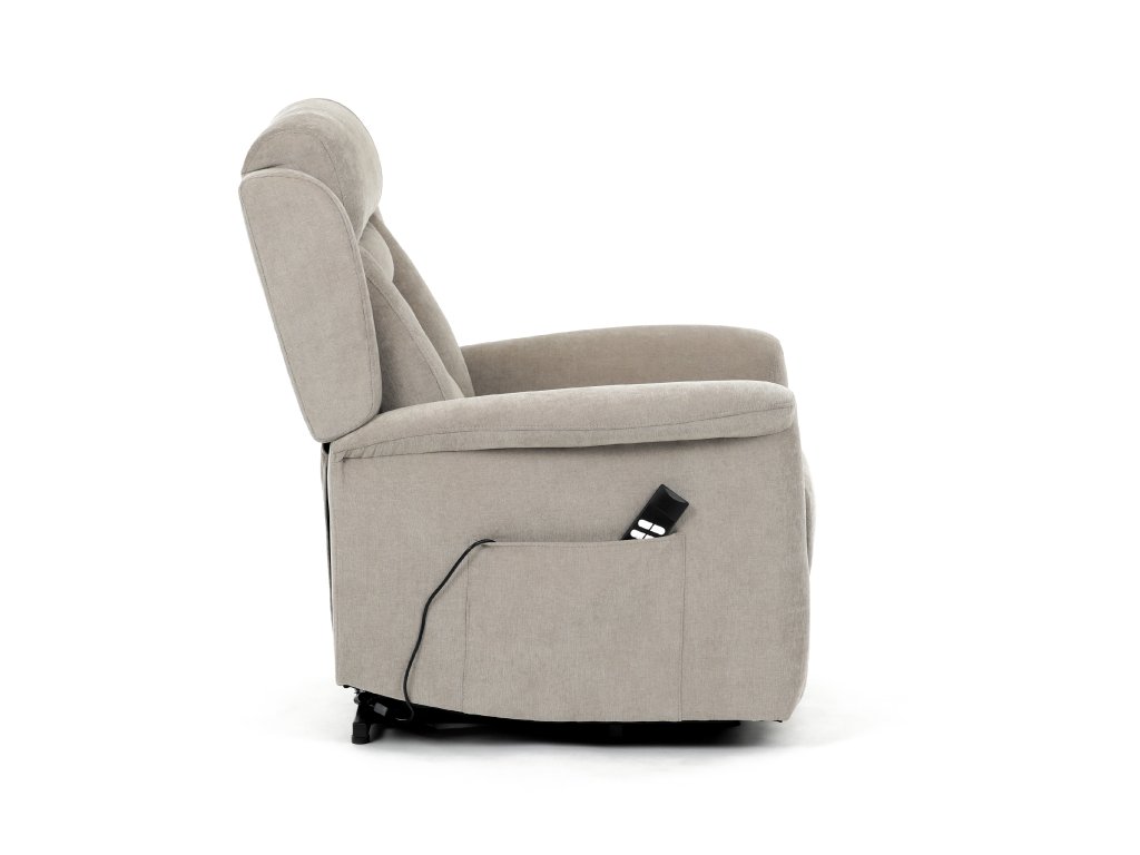 Křeslo je vybaveno funkcí výklopu, která usnadňuje vstávání, a elektrickým kabelovým ovládáním s intuitivním dálkovým ovladačem. Pevná kovová podnož zaručuje stabilitu a bezpečnost při používání. Ergonomický tvar sedáku, široké područky a moderní design z něj dělají ideální doplněk do obývacího pokoje.