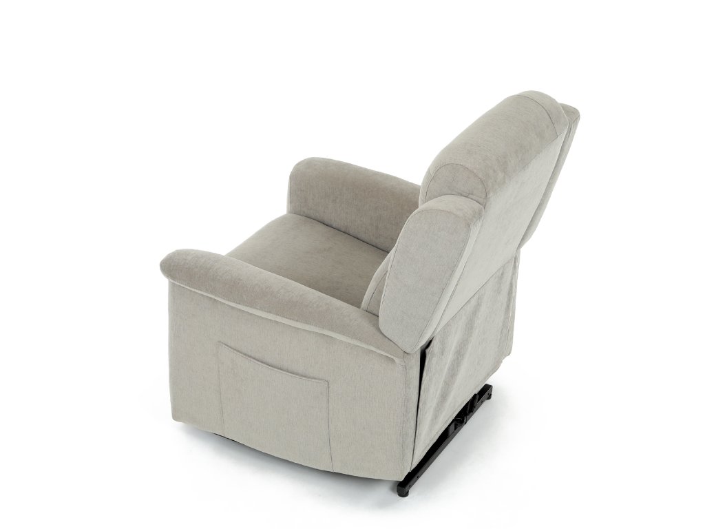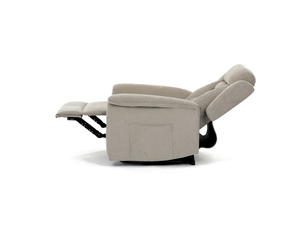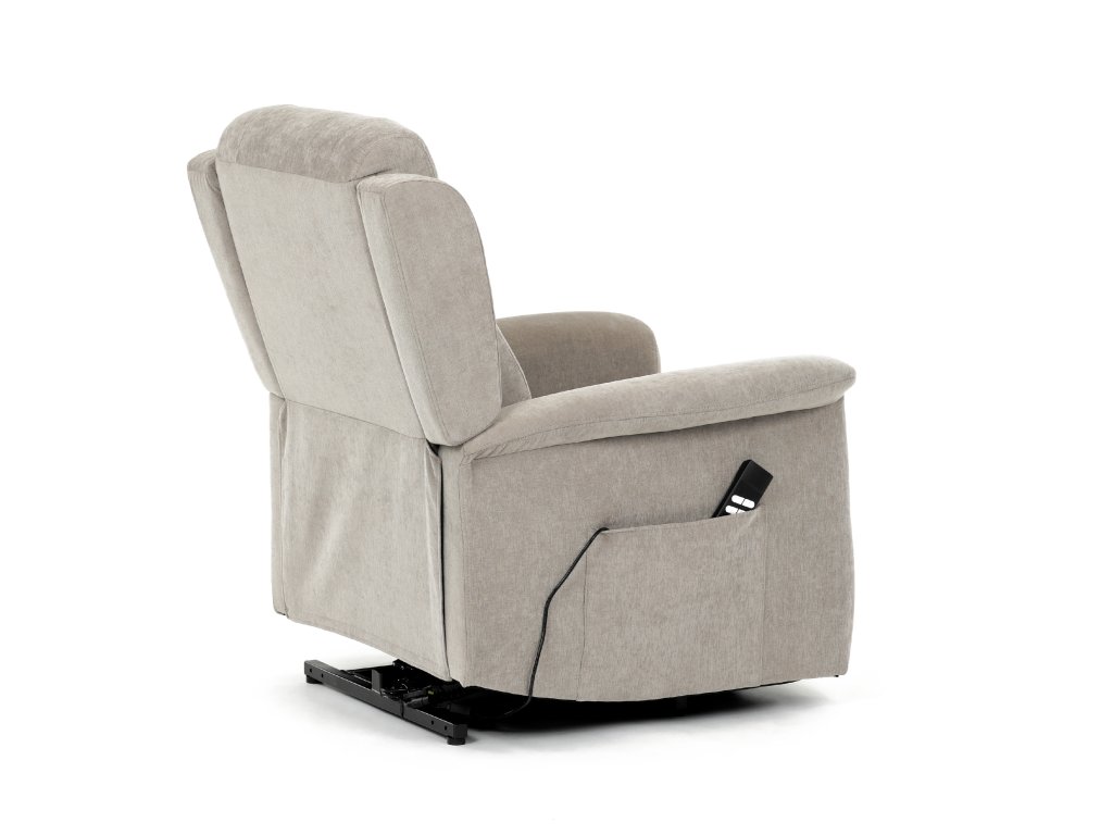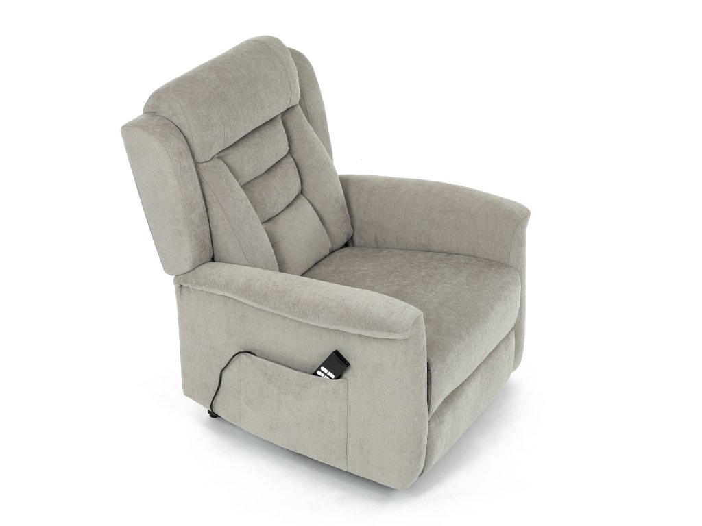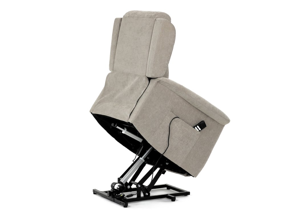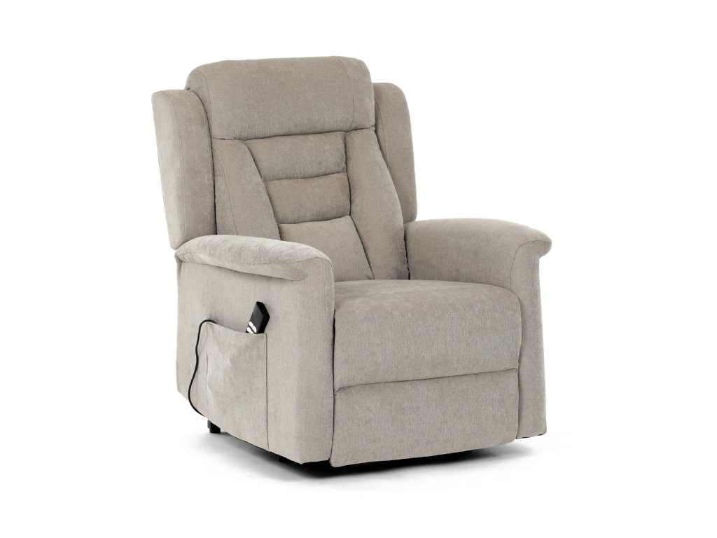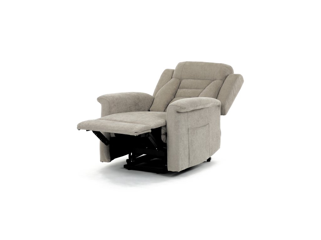 Křeslo je vybaveno funkcí výklopu, která usnadňuje vstávání, a elektrickým kabelovým ovládáním s intuitivním dálkovým ovladačem. Pevná kovová podnož zaručuje stabilitu a bezpečnost při používání. Ergonomický tvar sedáku, široké područky a moderní design z něj dělají ideální doplněk do obývacího pokoje.