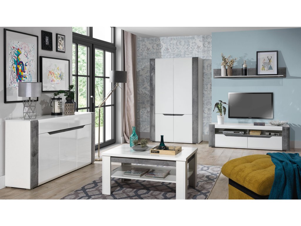 Luxusní konferenční stolek Brando B9 s odkládací policí nabízíme z lamina v dezénu bílá / beton. Deska stolu o síle lamina 28mm je ve vysokém bílém lesku a dodává tak místnosti nádech elegance. V naší nabídce naleznete ucelený obývací pokoj Brando. Potřebujete-li však ještě více úložných prostorů, prohlédněte si celou kolekci Brando a vyskládejte si obývací pokoj a jídelnu dle vašich představ a možností. Dodáváme v demontu.