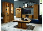 Vitrína LOCARNO v elegantním světlém dubovém dekoru s šedými prvky je ideální do obývacího pokoje nebo jídelny.