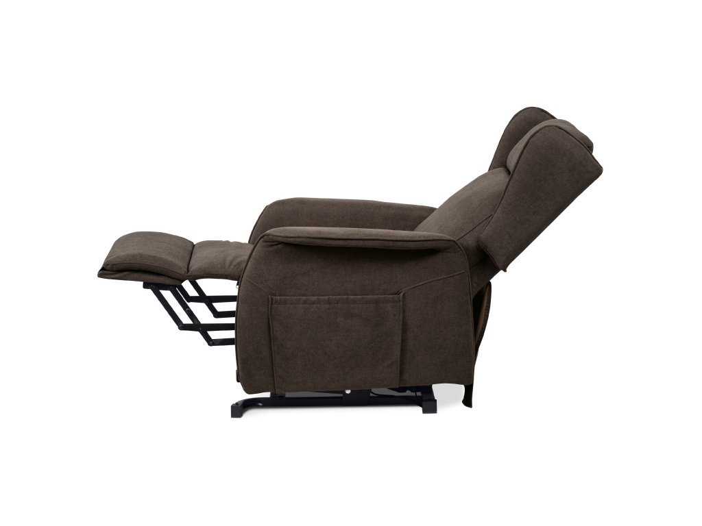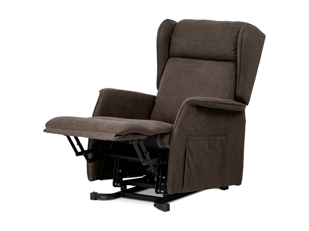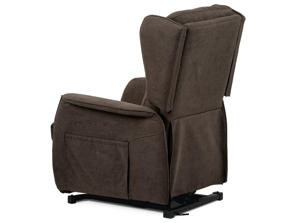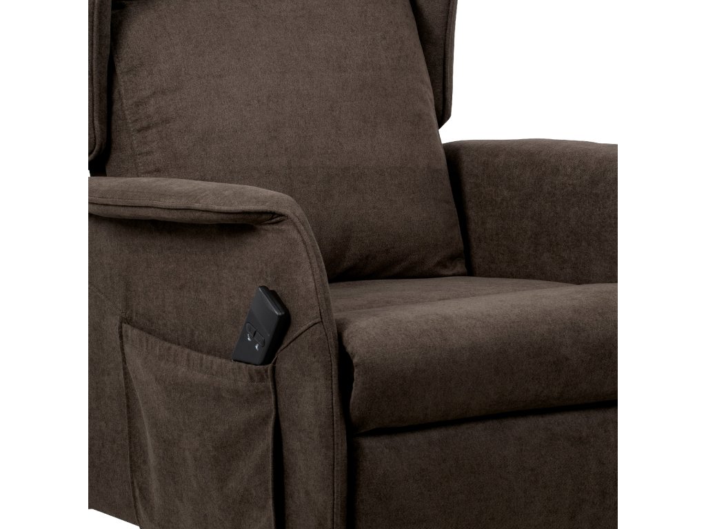 Polohovací křeslo TV-1190 BR2 je určené pro pohodlné sledování televize a relaxaci. Potah z hnědé látky je měkký a snadno udržovatelný. Křeslo má jeden motor s elektrickým ovládáním pro plynulé nastavení opěradla a výklopnou funkci pro snadné vstávání. Stabilní kovová podnož zajišťuje pevnost a dlouhou životnost, ergonomicky tvarované opěradlo s bočními křídly (ušák) podporuje hlavu a krk. Rozkládací mechanismus umožňuje pohodlný odpočinek.