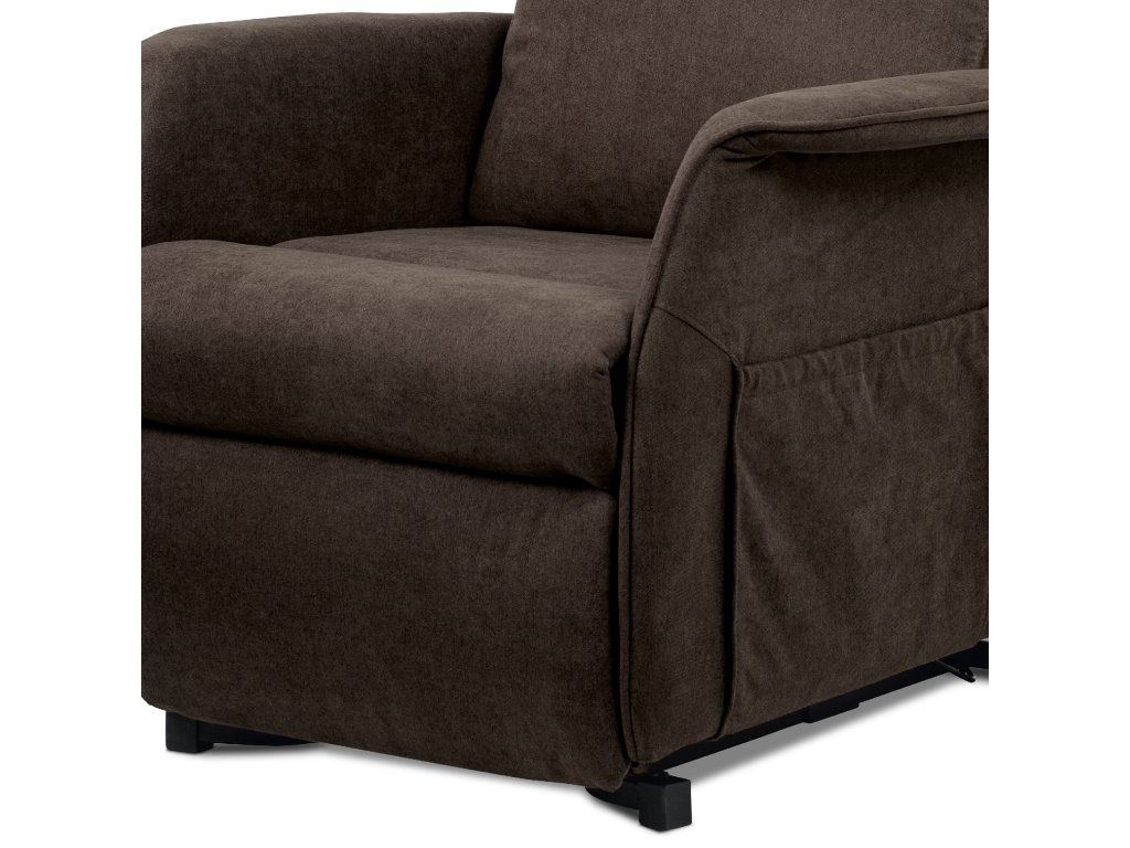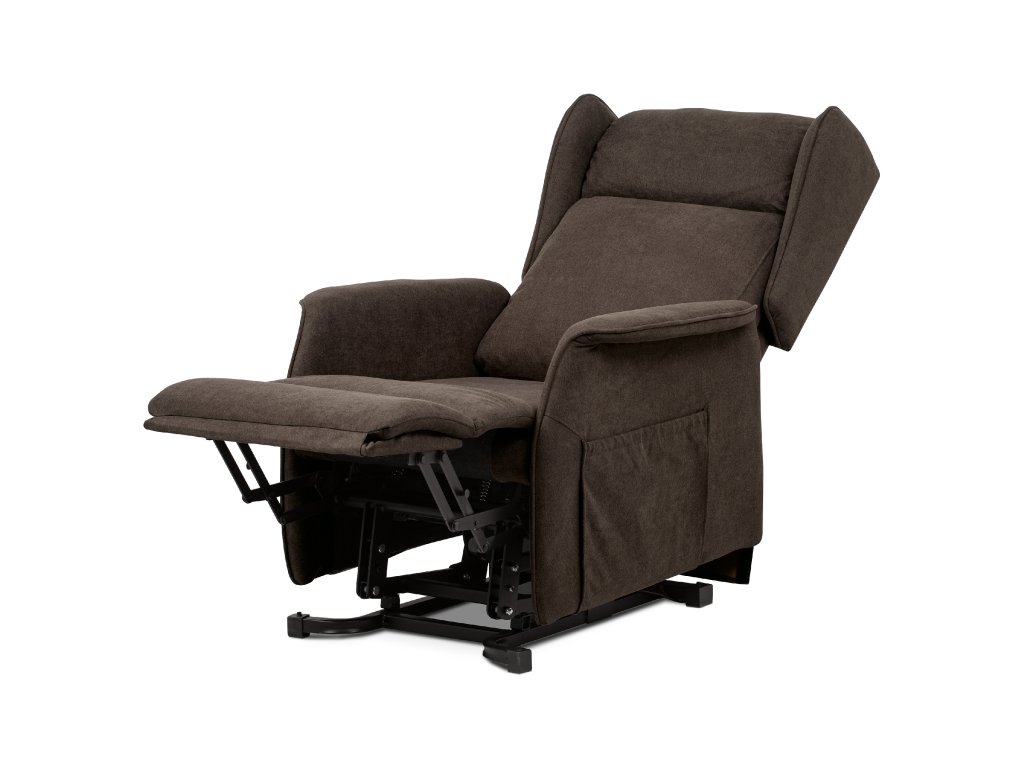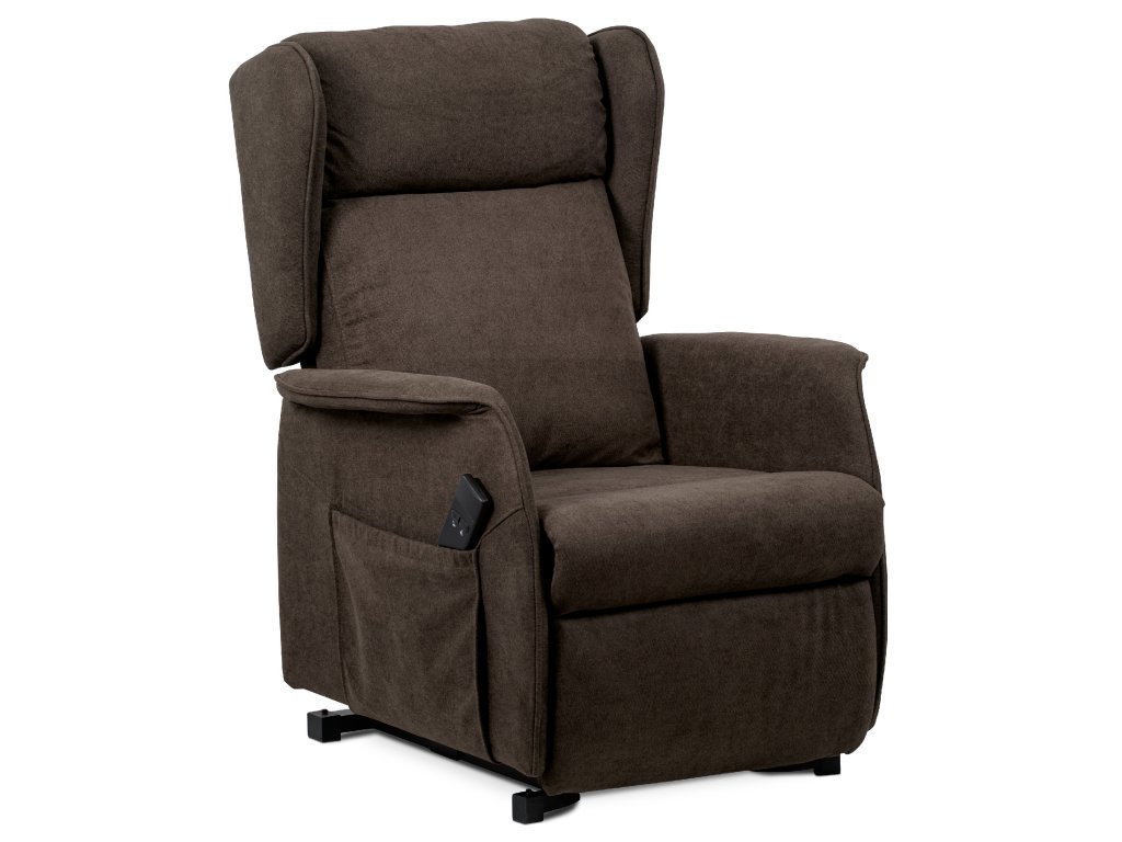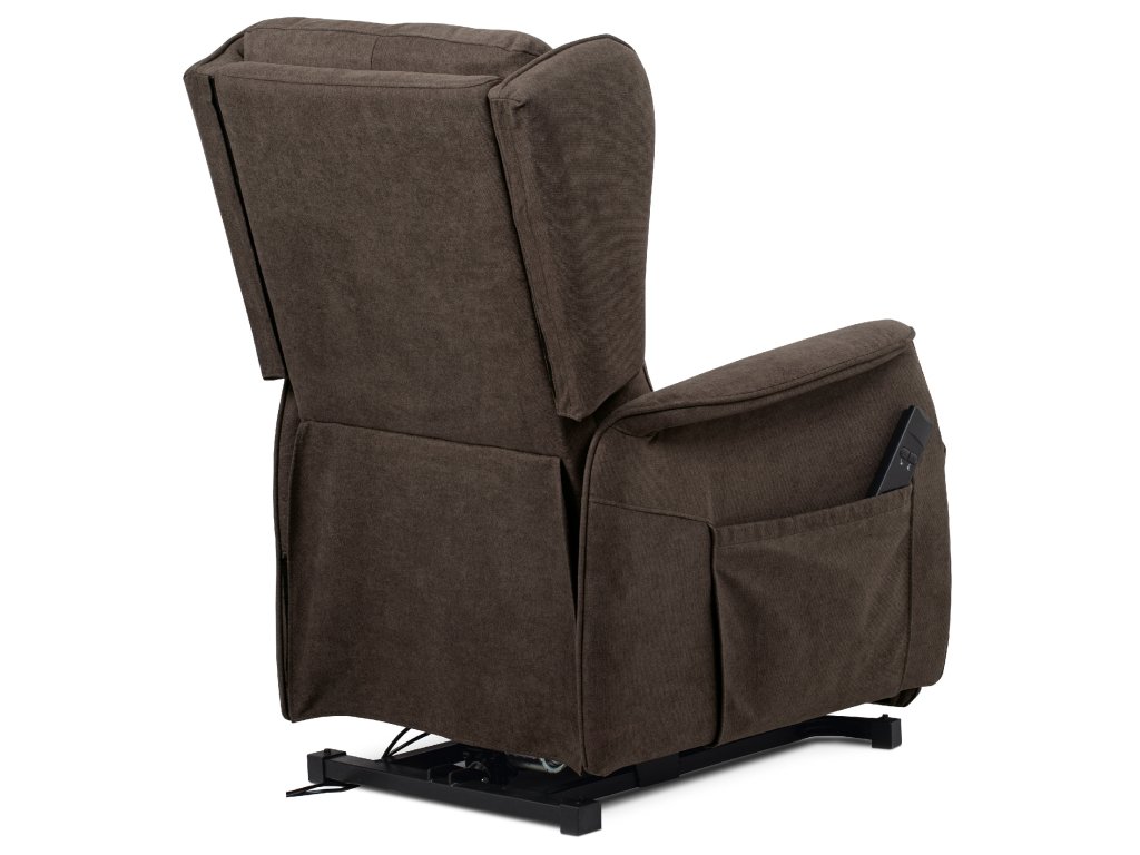 Polohovací křeslo TV-1190 BR2 je určené pro pohodlné sledování televize a relaxaci. Potah z hnědé látky je měkký a snadno udržovatelný. Křeslo má jeden motor s elektrickým ovládáním pro plynulé nastavení opěradla a výklopnou funkci pro snadné vstávání. Stabilní kovová podnož zajišťuje pevnost a dlouhou životnost, ergonomicky tvarované opěradlo s bočními křídly (ušák) podporuje hlavu a krk. Rozkládací mechanismus umožňuje pohodlný odpočinek.