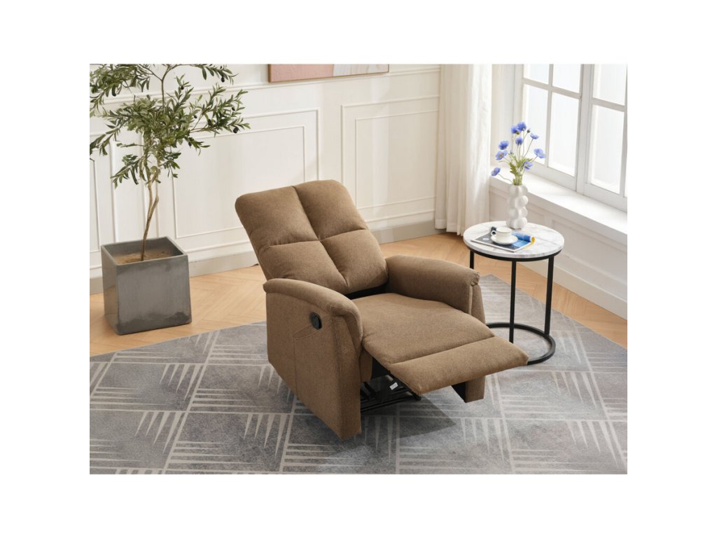 Pomocí postranní páky snadno nastavíte sklon opěrky a zvednete podnožku pro dokonalý relax. Praktická kapsa na boku je ideální na dálkový ovladač, časopisy nebo knihu.