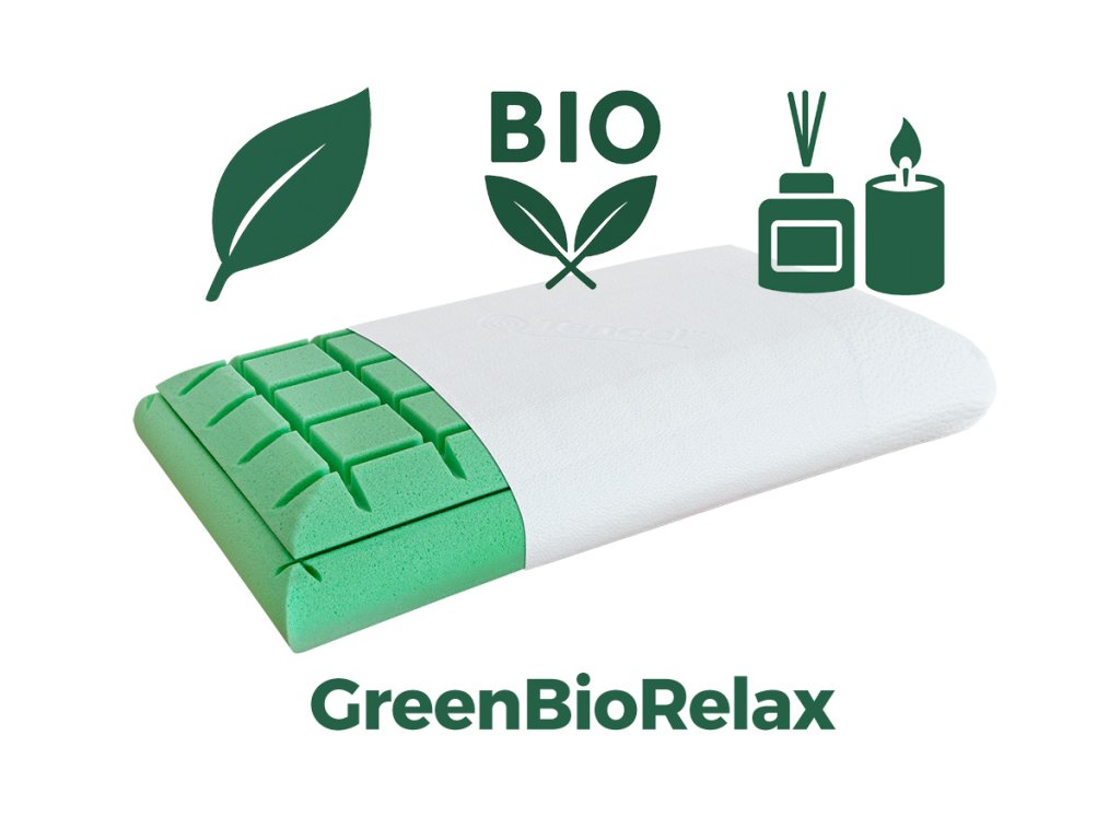 Polštář Alivio kombinuje pohodlí měkké paměťové pěny s přírodní technologií GreenBio Relax.
