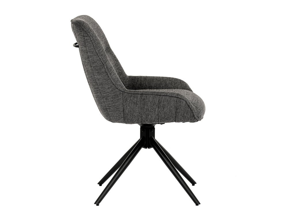 Stylová jídelní a konferenční židle v tmavě šedé látce s otočným mechanismem.