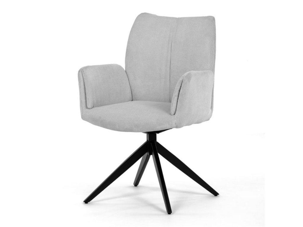 Stabilní centrální podnož z černého kovu zajišťuje pevnost a dlouhou životnost, zatímco otočný mechanismus L/P 90° s funkcí reset umožňuje snadný pohyb a návrat sedáku do původní polohy. Díky integrovaným područkám je židle ideální jak pro stolování, tak i pro práci u stolu či delší posezení s přáteli.