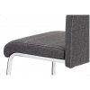 Moderní jídelní židle je čalouněná šedou látkou s dekorativním bílým prošitím sedáku i opěráku.